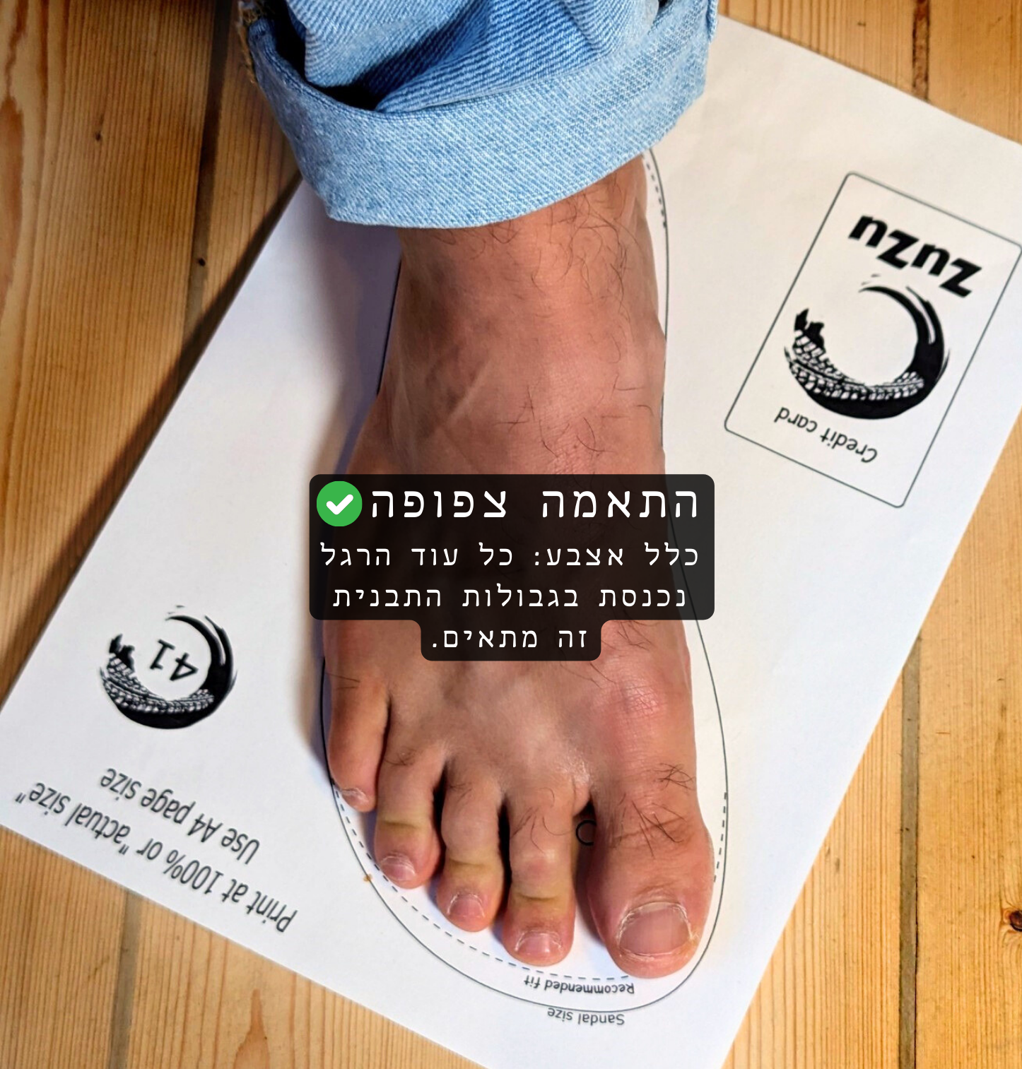 | מידה | אורך הסנדל (ס"מ) | הדפסה |