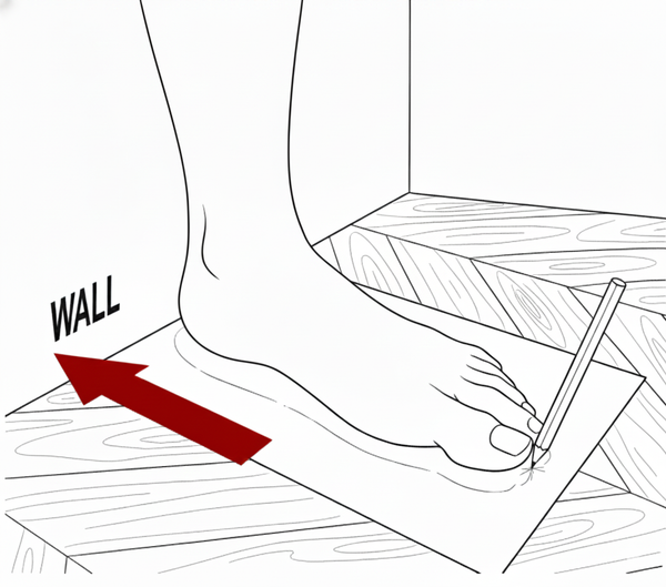 עמדו זקוף עם העקב צמוד לקיר. בקשו ממישהו לסמן את הקו של קצה הבוהן הארוכה ביותר.